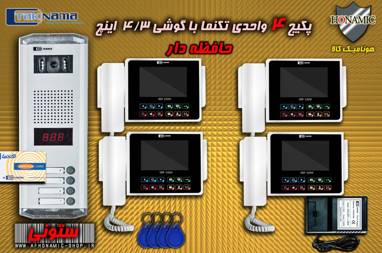 پکیج 4 واحدی آیفون تصویری دربازکن تصویری تکنما گوشی 4.3 اینچ CM43 حافظه دار پنل کارتی ستونی
