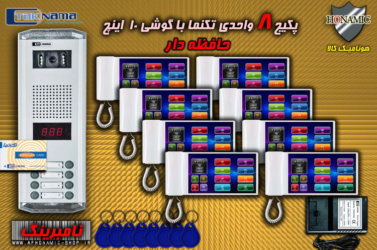 پکیج 8 واحدی آیفون تصویری دربازکن تصویری تکنما گوشی 10 اینچ F10 حافظه دار پنل نامبرینگ کارتی